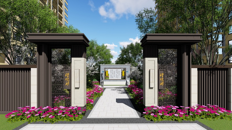 園區(qū)道路采用人車分流的設(shè)計(jì)方式,避免大量私家車對(duì)居住環(huán)境的影響,保證小區(qū)的安全與安靜。設(shè)計(jì)結(jié)合單元入口、車庫(kù)位置及各功能分區(qū),遵循新中式景觀特點(diǎn),圍合出院落空間。