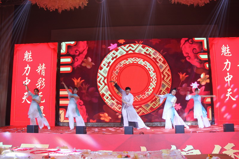 物業(yè)集團(tuán)公司《中天贊》,通過(guò)不同的戲曲形式,歌頌中天集團(tuán)帶頭人的高瞻遠(yuǎn)矚與宏偉戰(zhàn)略,20年風(fēng)雨同行,帶領(lǐng)一群充滿自信與激情的員工披荊斬棘,不畏艱難,朝著成功的目標(biāo)奮勇前行。王化啟總經(jīng)理親自登臺(tái)表演,得到了全場(chǎng)熱烈的掌聲。