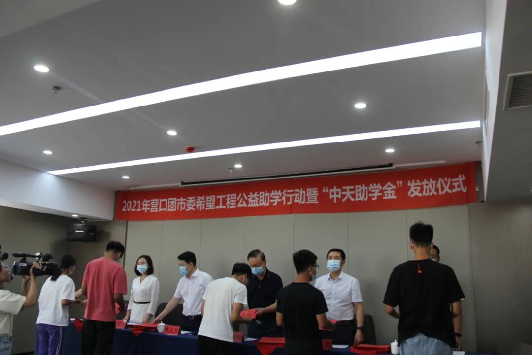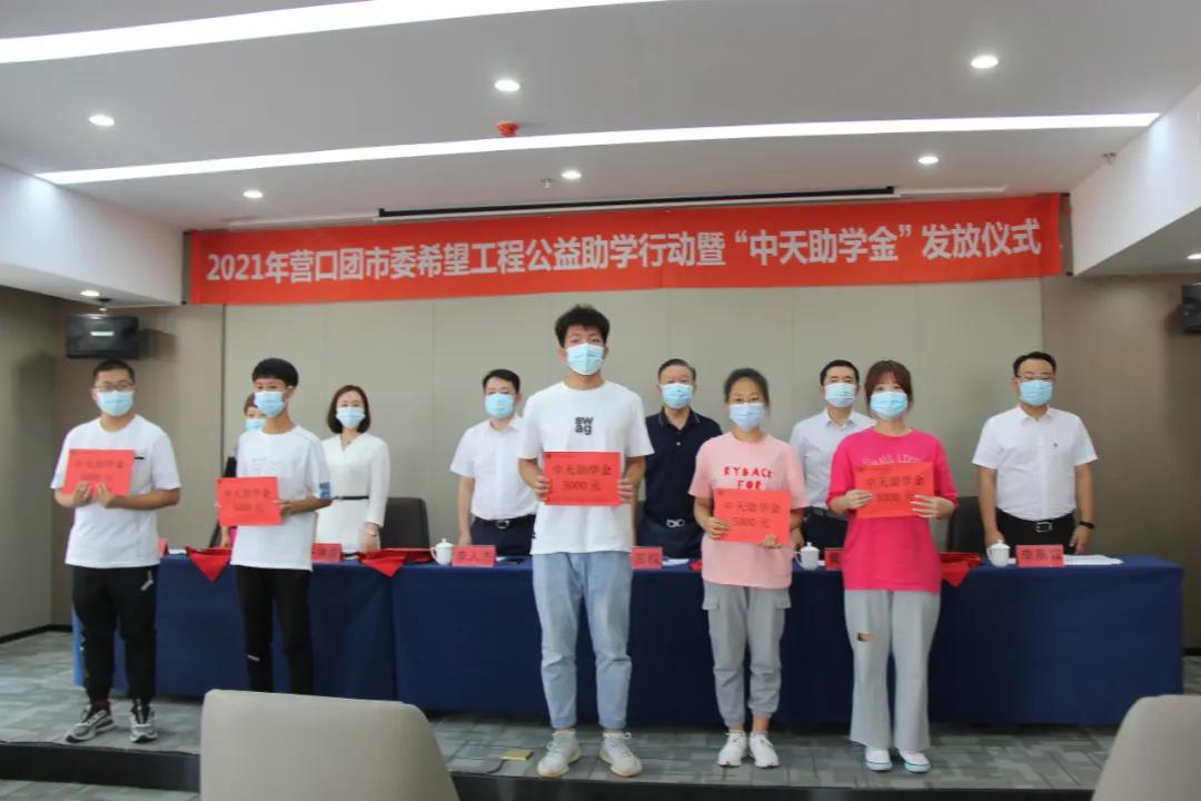 8月13日下午,2021年營口市希望工程公益助學(xué)活動暨“中天助學(xué)金”發(fā)放儀式在中天集團(tuán)總部會議室舉行。營口團(tuán)市委書記李人杰、副書記李禹霖,營口市慈善總會會長黃渤,市委教育工作委員會專職委員班龍,中天集團(tuán)董事長于寶權(quán)、總裁于洪波、行政人力資源總監(jiān)許文明以及獲得資助的35名學(xué)生,出席了本次發(fā)放儀式。
