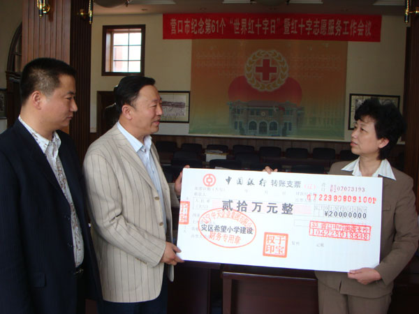 2008年5月,于寶權(quán)董事長(zhǎng)代表中天集團(tuán)為四川地震災(zāi)區(qū)的教育事業(yè)捐款20萬元