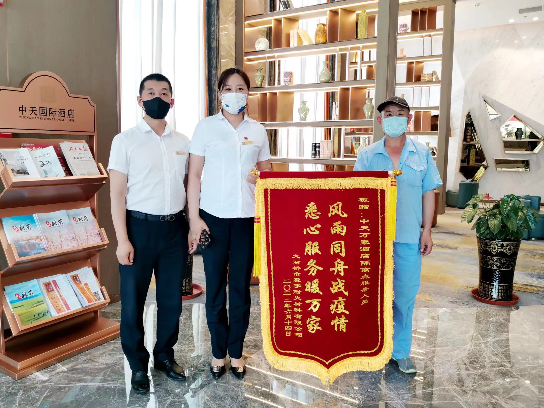 酒店公司作為疫情防控的最前線,肩負(fù)起隔離點的重任。大家義無反顧穿起隔離服,舍小家顧大家,堅守崗位,越是艱險越向前,不辭辛苦,不分晝夜,逆風(fēng)而行。24小時值守,配送三餐,整理消殺,熱情服務(wù),與高風(fēng)險“面對面”,與隔離人員“心貼心”。一名隔離人員在感謝信中說:雖然我看不清你們的臉,但我感受到了真正的“暖”。封控不封愛,隔離不隔心,中天酒店人勇敢地“逆行”站到防疫的前線,圓滿完成了隔離任務(wù),也收獲了社會的認(rèn)可與點贊。