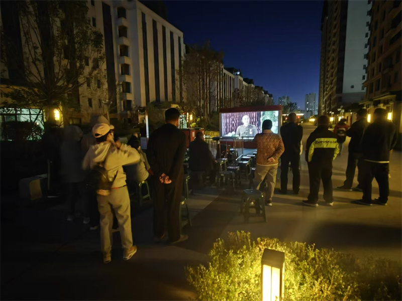 晚上為業(yè)主播放《大決戰(zhàn)之遼沈戰(zhàn)役》更是神來之筆。盡管夜晚帶著絲絲涼意,但業(yè)主們的熱情絲毫不減。大家圍坐在一起,眼睛緊緊盯著屏幕,沉浸于那段波瀾壯闊的歷史當(dāng)中。影片中宏大的戰(zhàn)爭(zhēng)場(chǎng)面、戰(zhàn)士們英勇無畏的沖鋒、戰(zhàn)略決策的智慧較量,無不震撼著每一個(gè)人的心。業(yè)主們似乎穿越時(shí)空,感受到了解放戰(zhàn)爭(zhēng)時(shí)期的熱血與艱辛,愛國(guó)情懷在心中進(jìn)一步高漲。這種情懷讓他們忘卻了寒冷,只沉浸在對(duì)祖國(guó)偉大歷程的自豪與感動(dòng)之中。