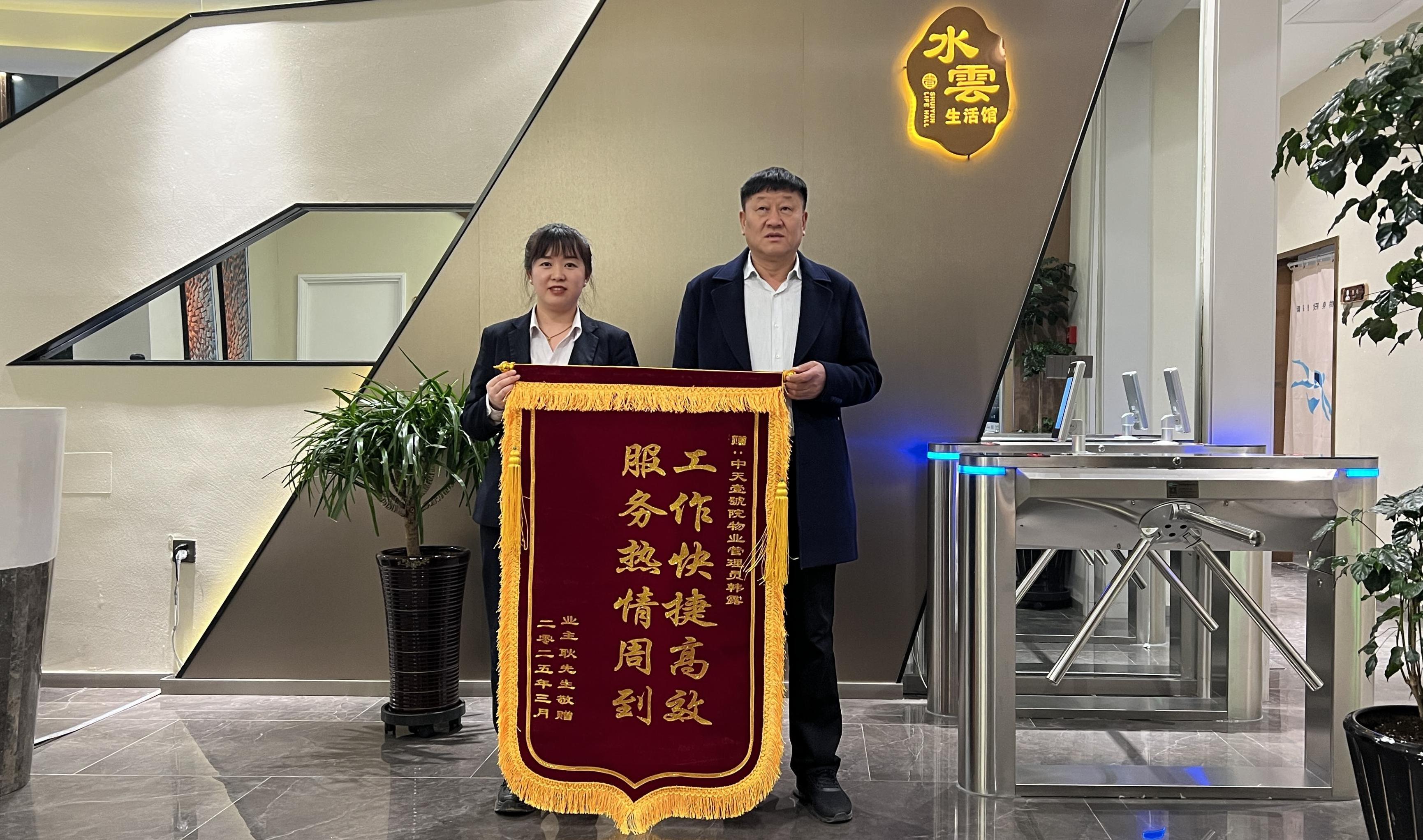 每一面錦旗背后,都有一個(gè)暖心的故事,都閃耀出一份真情和愛心。近日,中天壹號(hào)院水雲(yún)生活館的管理員就收到了一面充滿謝意的錦旗。就在上周,業(yè)主帶著外地來的朋友到會(huì)館休閑放松。朋友對(duì)會(huì)館的設(shè)施很感興趣,前臺(tái)的工作人員不僅耐心細(xì)致地為他們介紹了各個(gè)區(qū)域的功能,還根據(jù)他們的需求提供了游玩建議,讓朋友贊不絕口。在游玩過程中,業(yè)主朋友落下了自己的圍巾,前臺(tái)的工作人員發(fā)現(xiàn)后,第一時(shí)間聯(lián)系了業(yè)主,但業(yè)主表示今天沒有時(shí)間取回,可能要改天再來。我們的工作人員將圍巾收好并妥善保管直到業(yè)主取回。平日里,無論何時(shí)進(jìn)入會(huì)館,總能看到看到她面帶微笑,熱情地打招呼,辦理各項(xiàng)業(yè)務(wù)既高效又準(zhǔn)確。遇到業(yè)主咨詢問題,也總是不厭其煩地解答,還會(huì)主動(dòng)提供幫助,讓每一位業(yè)主都感受到了家一般的溫暖。