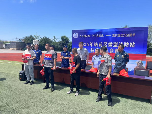 競賽緊扣實戰(zhàn)需求,設置水槍水帶連接賽、傷員擔架救援賽、防護裝備穿戴賽、滅火器識別選擇賽、消防知識挑戰(zhàn)賽等五個比賽項目,全面檢驗選手的體能、技能和團隊協(xié)作能力,充分展現(xiàn)現(xiàn)代化救援技術。中天物業(yè)最終獲得由站前區(qū)消防救援大隊頒發(fā)的二等獎“應急處置精銳團隊”牌匾。