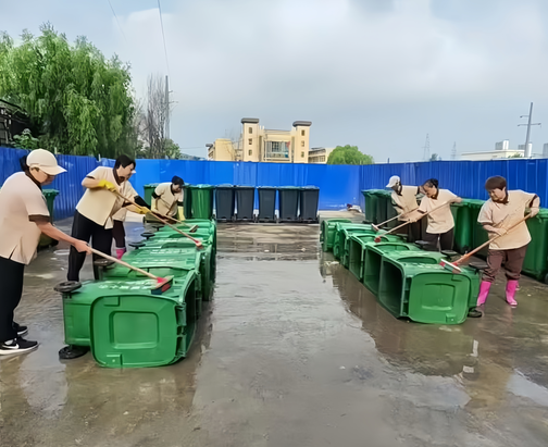 2. 嚴(yán)格消殺除味:在物理清洗后,保潔人員嚴(yán)格按照衛(wèi)生防疫要求,對(duì)清洗干凈的垃圾桶內(nèi)外表面及周邊地面噴灑高效環(huán)保的消毒藥劑和除味劑,有效殺滅細(xì)菌病毒,消除異味源頭,從根源上遏制蚊蠅滋生。