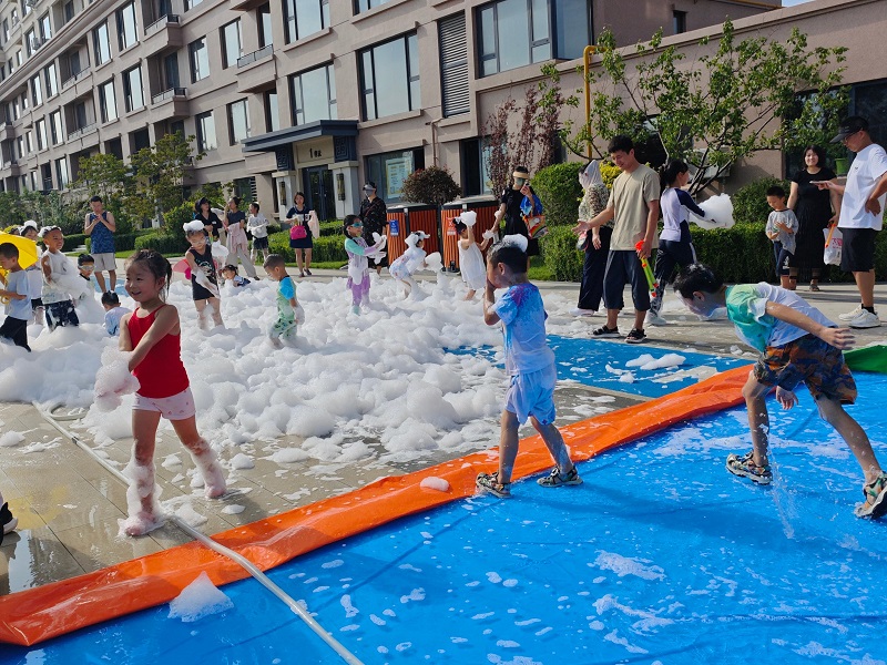 暑氣未消,水花正好。夏末時(shí)節(jié),中天華府為業(yè)主家人們帶來(lái)了一場(chǎng)“繽紛泡泡趴·一起狂歡”親子活動(dòng)。8月23日下午,中天華府二期39#樓前化身夢(mèng)幻樂園,45組新老業(yè)主家庭攜手孩子,共赴盛夏之約,在泡沫與歡笑中度過(guò)了一個(gè)沁涼而充滿童趣的午后。