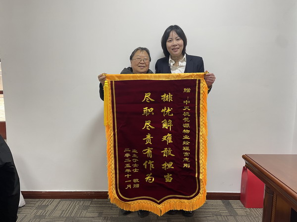 11月29日,中天桃花源小區(qū)15號(hào)樓3單元2-11樓業(yè)主捧著”排憂(yōu)解難敢擔(dān)當(dāng),盡職盡責(zé)有作為”的錦旗來(lái)到物業(yè)辦公室,感謝中天桃花源物業(yè)經(jīng)理富志剛及物業(yè)全體員工給予高度的認(rèn)可。此前業(yè)主家突發(fā)水管破裂,物業(yè)經(jīng)理接到通知后,迅速聯(lián)系管家召集隊(duì)伍前往水管破裂現(xiàn)場(chǎng),到達(dá)現(xiàn)場(chǎng)后仔細(xì)查看破裂口,物業(yè)經(jīng)理富志剛指揮有序,在與漏水口爭(zhēng)分奪秒,及時(shí)搶修,避免了損失擴(kuò)大,后續(xù)由保潔清理滿(mǎn)是水漬的地面,也保障了業(yè)主正常用水及進(jìn)出安全。業(yè)主家老人兒女經(jīng)常不在身邊,作為物業(yè)經(jīng)理總能為老人家排憂(yōu)解難,遇到問(wèn)題,都非常耐心的給老人家處理解決,無(wú)論是設(shè)施故障還是生活中的瑣事,物業(yè)經(jīng)理富志剛總能第一時(shí)間響應(yīng),以高效務(wù)實(shí)的態(tài)度全力解決。從每一個(gè)細(xì)節(jié)都彰顯著物業(yè)經(jīng)理的責(zé)任與擔(dān)當(dāng),同時(shí)也讓業(yè)主對(duì)中天桃花源物業(yè)全體員工的辛勤的付出和努力工作加以肯定,讓業(yè)主倍感安心與溫暖,因此用一面錦旗表達(dá)最誠(chéng)摯的謝意。