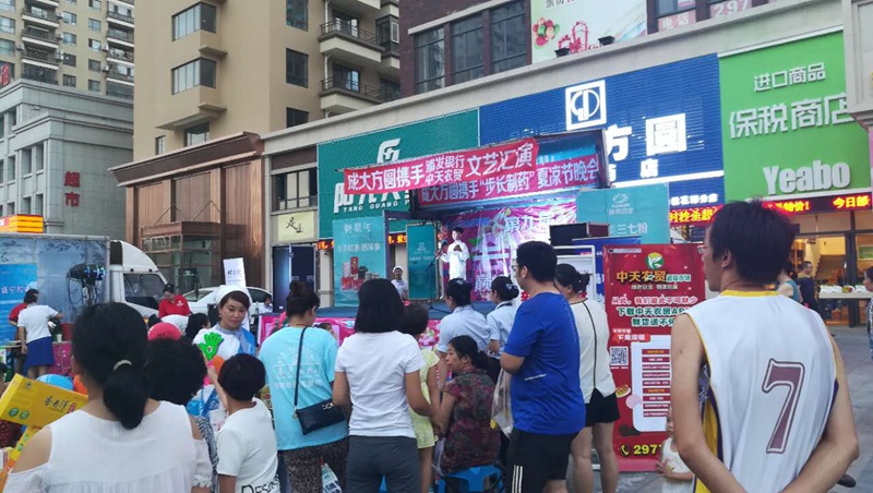 晚會(huì)全程都在播放中天農(nóng)貿(mào)市場新一輪的活動(dòng)內(nèi)容——中天夜市、快樂星期五、中天惠家日讓顧客在觀看演出的同時(shí)也充分了解農(nóng)貿(mào)市場新奇不斷的優(yōu)惠活動(dòng)。主持人在演出中也不斷介紹中天農(nóng)貿(mào)市場簡介并與臺(tái)下觀眾互動(dòng),只要回答正確關(guān)于中天農(nóng)貿(mào)市場的相關(guān)問題即有小禮物贈(zèng)送,夏涼扇、環(huán)保袋、休閑撲克都成為觀眾爭先搶答問題的動(dòng)力源泉。同時(shí)在市場正門,中天農(nóng)貿(mào)APP的吸粉活動(dòng)也在緊張的進(jìn)行著,掃描即有禮,下單達(dá)額即送車活動(dòng)也吸引了大量觀眾的詢問,下載的觀眾吃驚在家跟前就有這樣的APP,老年朋友們也在不斷感嘆要升級(jí)自己手機(jī)的性能啦,活動(dòng)當(dāng)場就有一對(duì)老倆口下單,拉著中天農(nóng)貿(mào)的購物車載著滿滿的貨品心滿意足的回家了!
