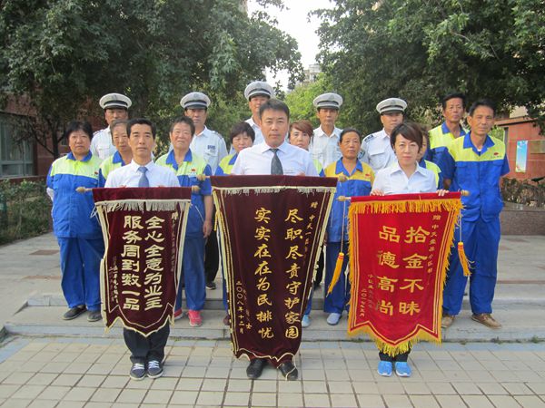 2008年,一場(chǎng)大雪過后,中天壹品小區(qū)業(yè)主張女士出差數(shù)日回家后發(fā)現(xiàn)融化的雪水無法從冰凍堵塞的雨水管排下水漫布整個(gè)陽臺(tái),是物業(yè)組織人員全力為其排水,業(yè)主很感動(dòng),送來“盡職盡責(zé)守護(hù)家園 實(shí)實(shí)在在為民排憂”的錦旗。